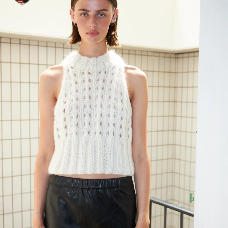 ACE is a luxurious knitted top in bright eye-catching colors and a beautiful structured pattern. It fits slightly cropped to the waist and is easy to dress up and down - making it perfect for many occasions. Layer over a top for a modern look.