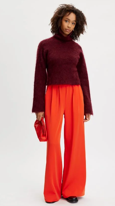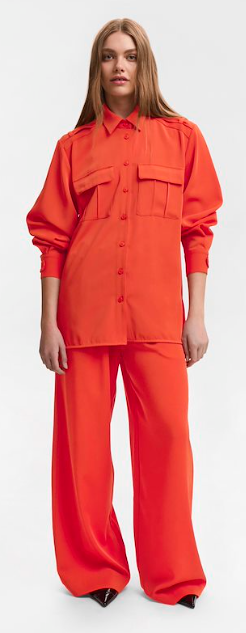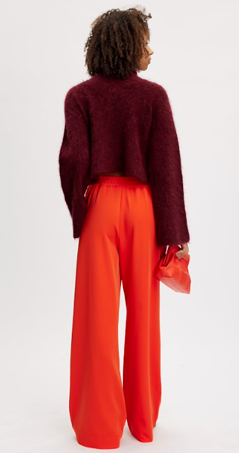 A floor-length, wide-leg pant with front pleats. In an oversized fit, with an elastic waist. A great way to celebrate the season’s earthy colours, wear it together with the matching Sloan GZ shirt. The pants on the model have been taken down. Therefore, they will be shorter when you receive them. If you need more length, you can easily take them down yourself.