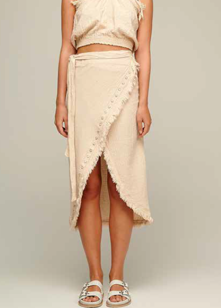 PEARL & CAVIAR SAMPLE S/M - S22P1149 100% COTTON SKIRT WITH STUD DETAILING