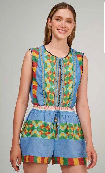 This coloured shorts are incredibly comfortable with beautiful patchwork. Adjustable tassels.