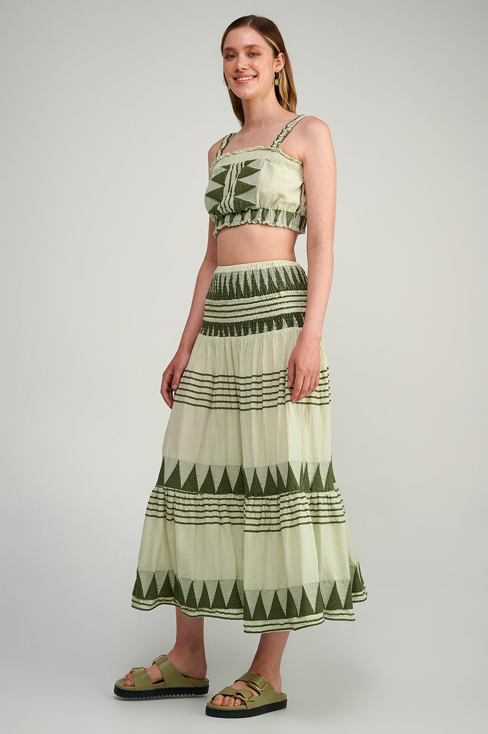 Crop Top with femenine ruffled straps is a playful addition to any of the brand's skirts or shorts.