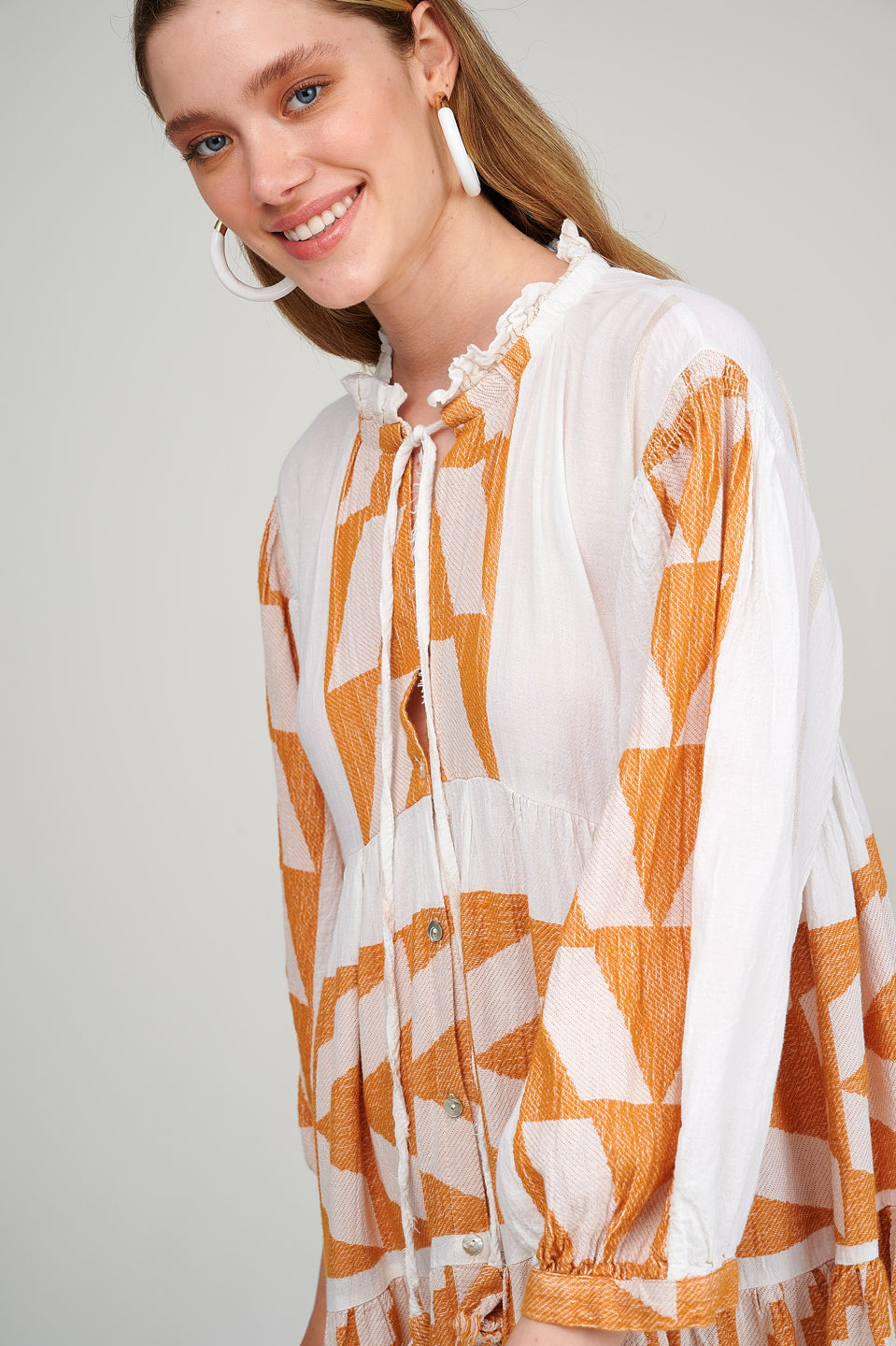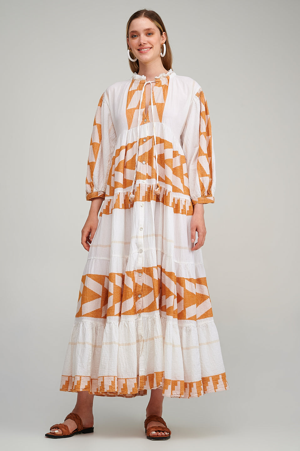 This Maxi Dress from pearl and caviar takes color and freshness to the next level. Bubbles sleeves and v neckline with tassels.
