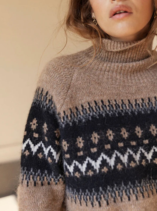 The colors of the knit is a mix of natural colors from the alpaca. The alpaca is also mulesing free meaning that the wool is sourced from a pain free process.