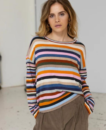 Description: Safir knit from Project AJ117. The knit is a striped soft cotton knit with a round neck and long sleeves.